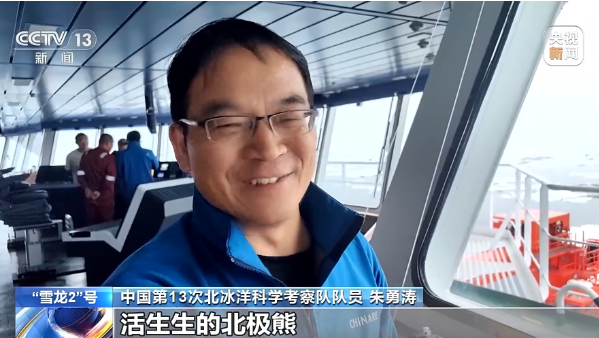 中国第13次北冰洋科学考察队队员 朱勇涛:我看到了。我觉得很激动,我第一次看到野生的、活生生的北极熊。