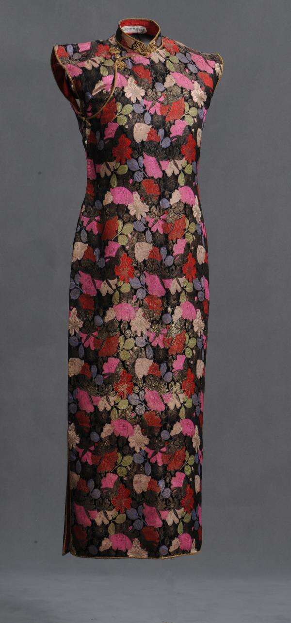 满地提花缎无袖单旗袍(新新公司出品)约1940年代