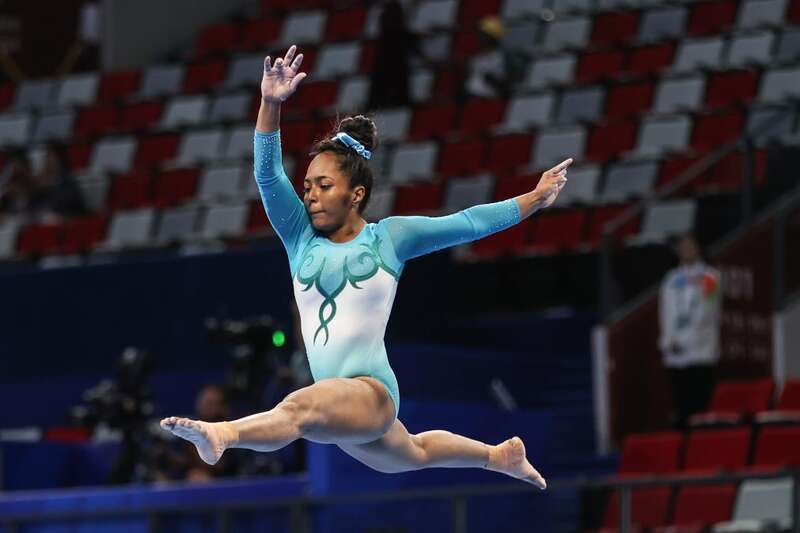 走进赛场,一身蓝衣的斯里兰卡运动员阿马娅·卡洛克塔吉显得很是与众不同,因为她的动作从难度到完成度都显得较为业余,她孤身出战却又看上去有很多教练和队友。每次完赛后,都会有同组教练员、运动员上前和她交流。在高低杠比赛中,土耳其队教练厄·居米什吕直接站到杠旁,全程保护她。