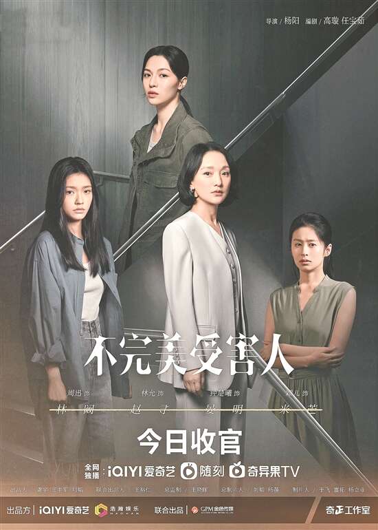 由杨阳执导,高璇、任宝茹编剧的《不完美受害人》,以“职场性侵”案件为剧情切入点,同时引入家暴案件,以“不完美”案件受害人视角探寻背后真相、洞察事件本质。剧中,林阚(周迅饰)、赵寻(林允饰)、米芒(颖儿饰)三人自身都有“不完美”之处,但经历了种种磨难,三人逐渐成长,逐渐找回自我。
