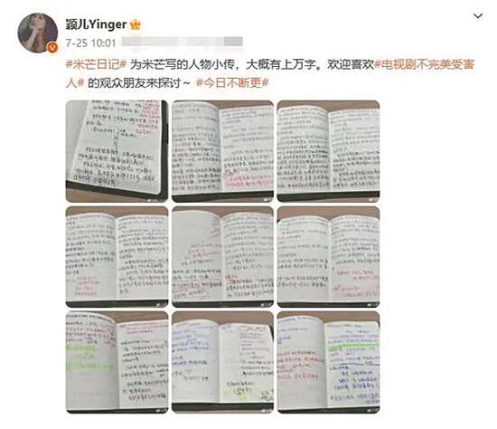 “我回头看了一下当时拍摄写在备忘录里的部分日记内容,拍摄过程还历历在目。看看当时的定妆照片,最初的米芒是多么青春漂亮,愿我们都不要成为赵寻和米芒,愿我们的世界能多点林阚和晏明。女孩们,一定要学会勇敢说‘不’!”颖儿拍了20天戏,也记了20天日记。在一些段落中,足以窥见一名青年演员对于社会话题的思考,以及对待表演的敬畏。