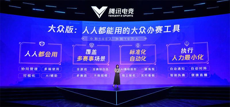 可能有人会问,一套工具适用于所有的电竞产品吗?张雅缇给出了肯定的答案,“工具适用于所有的电竞产品,非腾讯的产品也能支持,归根结底我们是提供一套办赛的标准化流程。”