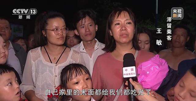 K396次列车乘客 王敏:这儿的居民自己家都停水停电,自己家里的米面都给我们都吃光了,但是人家还是想办法,一早上你看那边端出一盘面来,给路上所有没吃的人分享,我们很感谢这个地方。