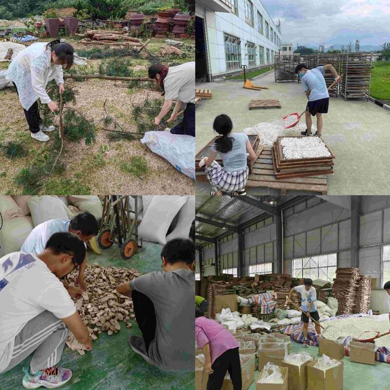 生物技术专业2021(1)班的周君作为团队里的“老成员”,从大一时就多次跟随尹立伟前往岳西县进行实地考察。今年暑假,他和团队成员一同故地重游,在加工茯苓中拾得农趣。“岳西县是茯苓的重要产地,用所学帮助当地茯苓产业更好地发展,这也是我选择生物技术专业的初衷。”