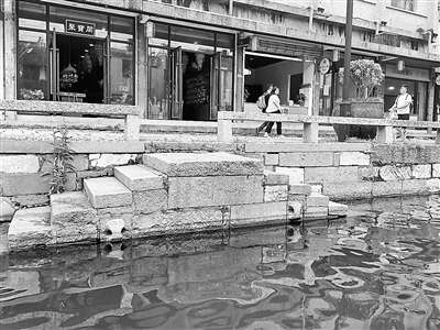 缆船石的分布位置也有讲究,双落水埠头有四颗,单落水埠头有三颗。除了河埠头镶嵌缆船石,在没有河埠头的岸边,只要超过4米的距离,也必须安装两颗缆船石,这是因为考虑到有些船长达到4米。