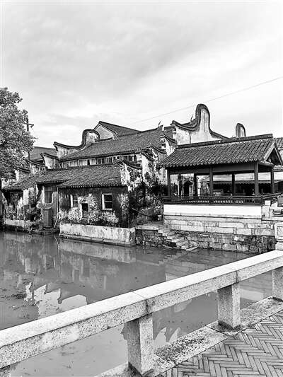 沿着蜿蜒的市河行走,错落有致的江南民居映入眼帘,路边有各色蔬菜、鱼鲜摊铺,烟火气十足,仿佛一下穿越到上世纪七八十年代的光景。