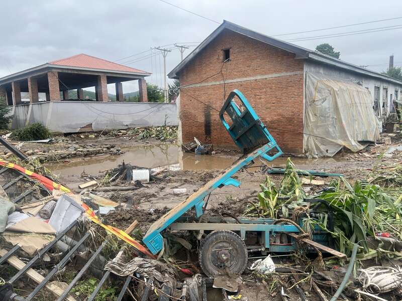 洪水过后的尔站经营所道路淤泥。尔站经营所三面环山,强降雨导致山洪爆发,冲击山下村落。中青报·中青网记者 王姗姗/摄