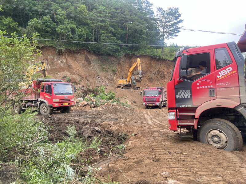由于洪水冲断前往受灾一线的部分道路,车辆只能走一条乡道,物资车也只能由小型皮卡车运往灾区,原本1小时的车程如今需要耗费2个半小时左右。该条乡道贯穿沙兰镇、响水镇、火山口国家森林公园、小北湖等路段。中青报·中青网记者 王姗姗/摄