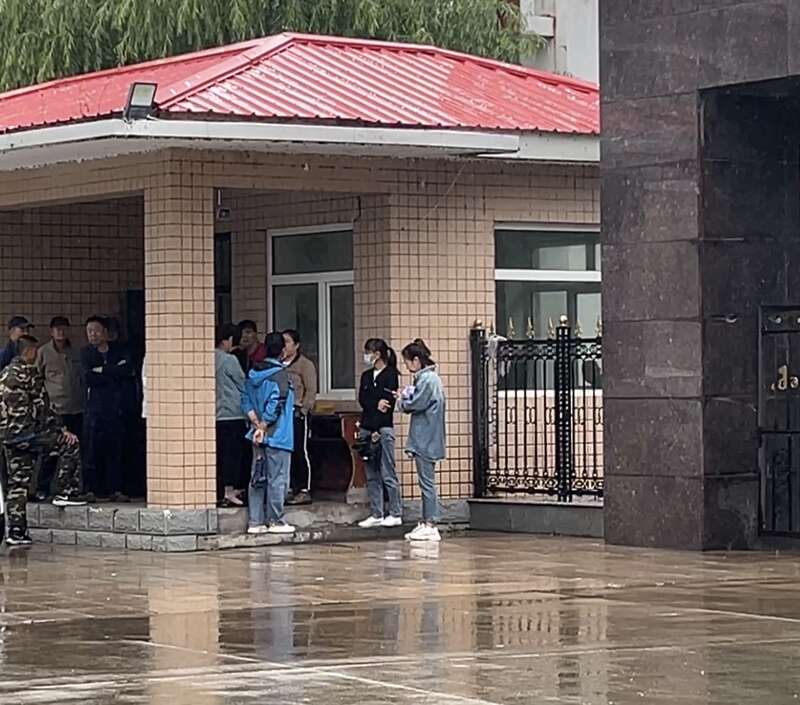 村民联系不上滞留在洪水灾区的家属,到东京城林业局有限公司等待救援消息。中青报·中青网记者 王姗姗/摄