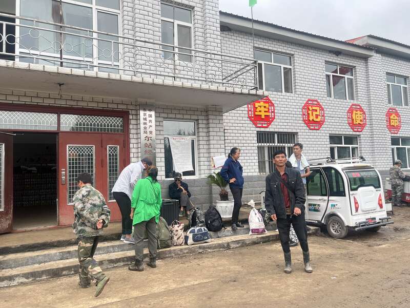 尔站经营所外等待转移的受灾村民。据尔站经营所相关负责人介绍,已安置100余名村民,由于道路不通,运送村民转移的车辆有限。中青报·中青网记者 王姗姗/摄
