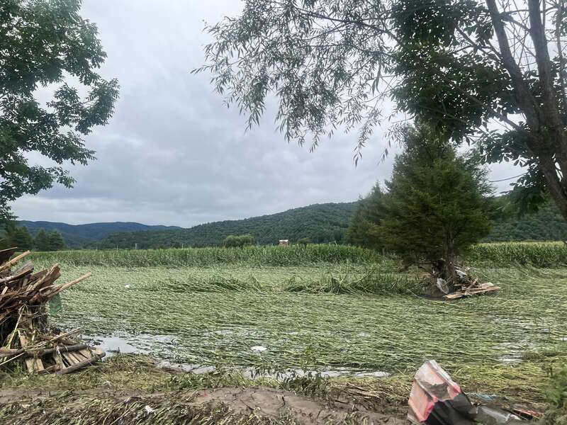 村民种植的玉米被洪水冲倒。中青报·中青网记者 王姗姗/摄