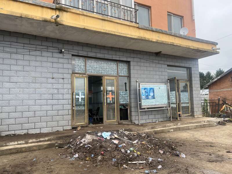 洪水过后,工作人员清理尔站经营所卫生所的洪水垃圾。中青报·中青网记者 王姗姗/摄