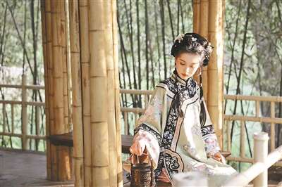 北京青年报记者观察到,网络上的清汉女照片、视频大致可以分为三种风格:颓败、明艳、对撞。颓败风大多以暗调陈设、器物做背景,人物妆容清淡、头发中分,衣服上绣花较少,整体色彩厚重。不少人物手中常常拿着鸟笼道具,以“笼中鸟”寓意主人公为“院中人”,展现清朝女性被困深宅大院的特征。