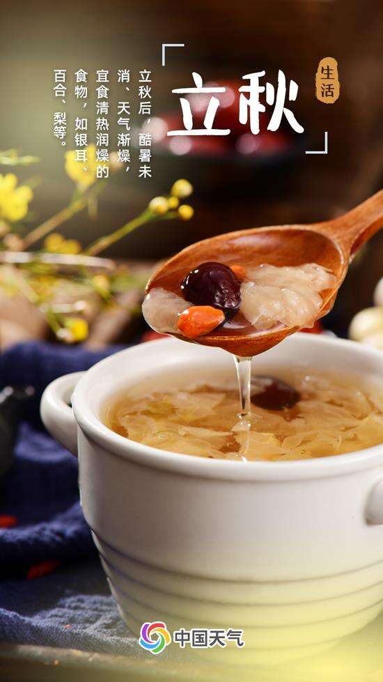 立秋后,酷暑未消、天气渐燥,人的生理状态也会随自然状态调节,身体容易因秋燥而不适,此时养生尤为重要,宜食清热润燥的食物,如银耳、百合、梨等。