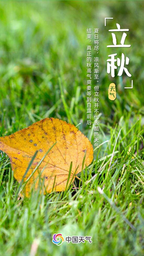 “风吹一片叶,万物已惊秋。”立秋是秋天的第一个节气,取之暑去凉来,秋天开始之意。但立秋并不代表酷热天气结束,经过一个漫长的夏季,热气消散和气温降低都尚需时日,真正的秋高气爽要等到白露前后。