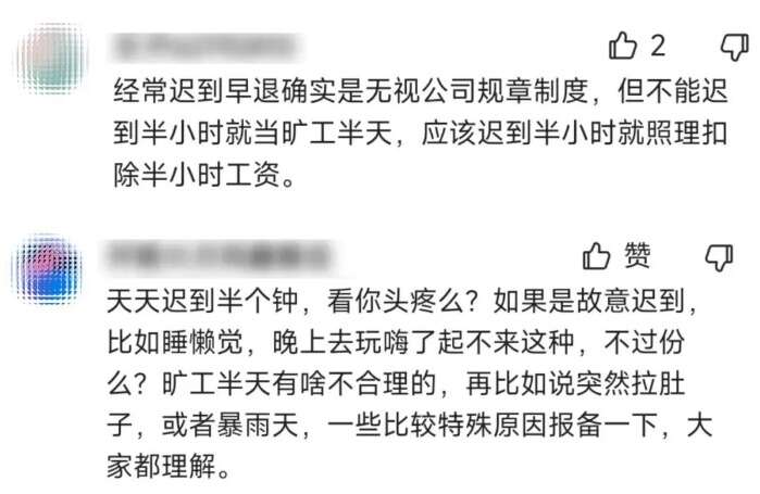 也有网友认为, 职工有义务遵守公司规定, “天天故意迟到”此等行为同样不可取。