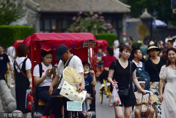 暑期,北京多个胡同游热门景区人头攒动,游客青睐胡同游。