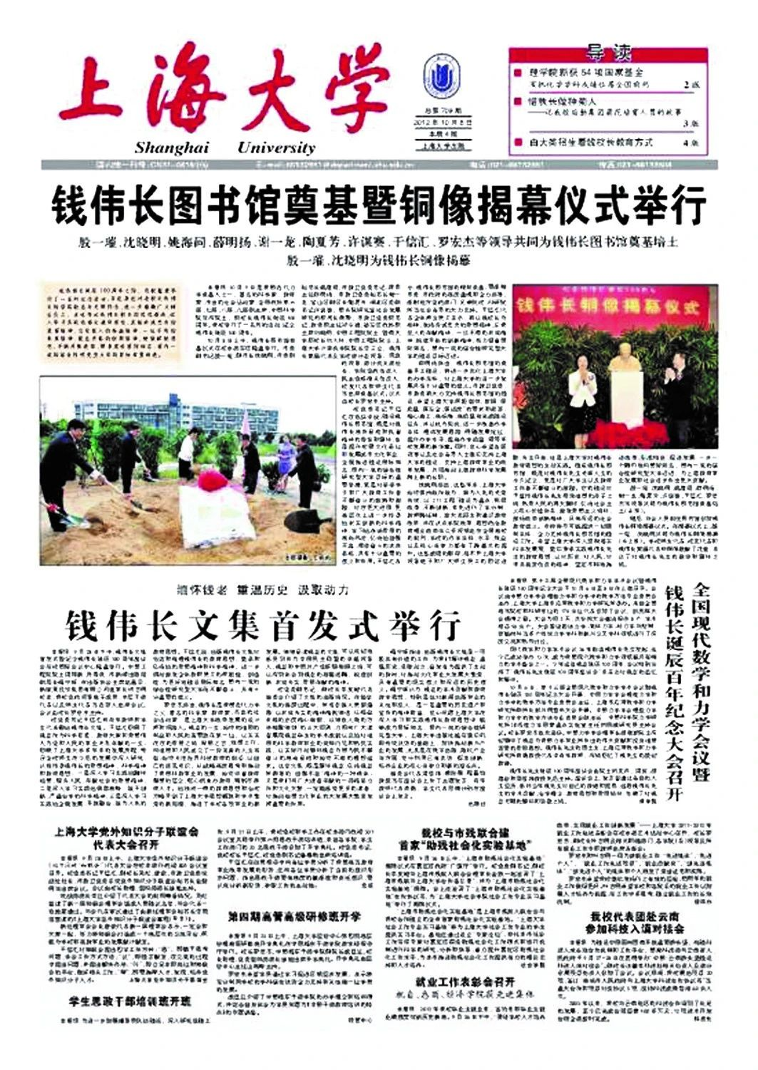 钱伟长逝世后,2012年,为纪念钱伟长诞辰,全面展示这位著名的科学家、教育家,杰出的社会活动家,中国民主同盟的卓越领导人,中国共产党的亲密朋友的风采,学校决定出版钱伟长纪念文集,并专门成立了编委会。