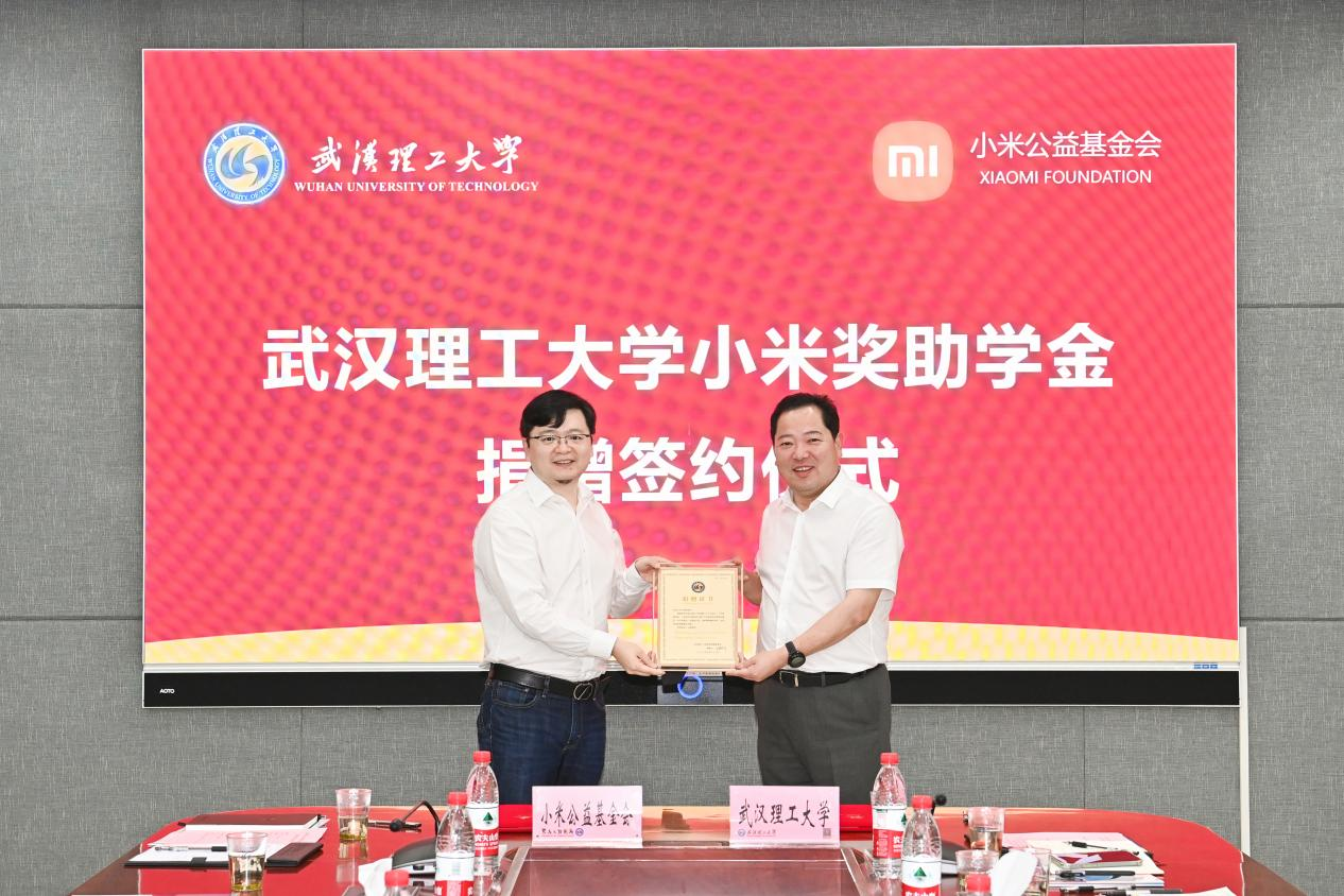 7月27日,北京小米公益基金会捐赠设立 “小米奖助学金”签约仪式 在学校举行。校党委书记信思金,校党委副书记孟芳兵,小米集团副总裁、技术委员会主席屈恒,小米集团武汉总部总经理、我校2001级电子商务专业校友周茂华,小米集团手机部手机产品部总监、我校1998级电子信息工程专业校友郭瑞敏,小米公益基金会副秘书长高文隽出席捐赠仪式。捐赠仪式由党政办主任李潮欣主持。
