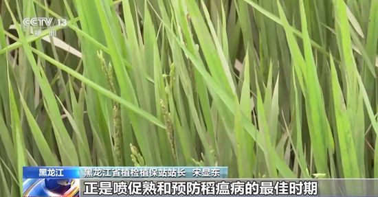 黑龙江省植检植保站站长 宋显东:像这块地迫切需要促熟了,正是喷促熟和预防稻瘟病的最佳时期。上面这几个功能叶还相当不错,因为水稻产量形成最重要的还是上面那三四个叶。