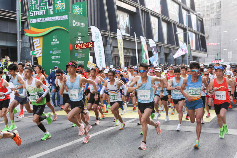 2023上海苏州河半程马拉松赛在普陀区鸣枪起跑(2023年4月22日摄)。新华社记者 辛梦晨 摄