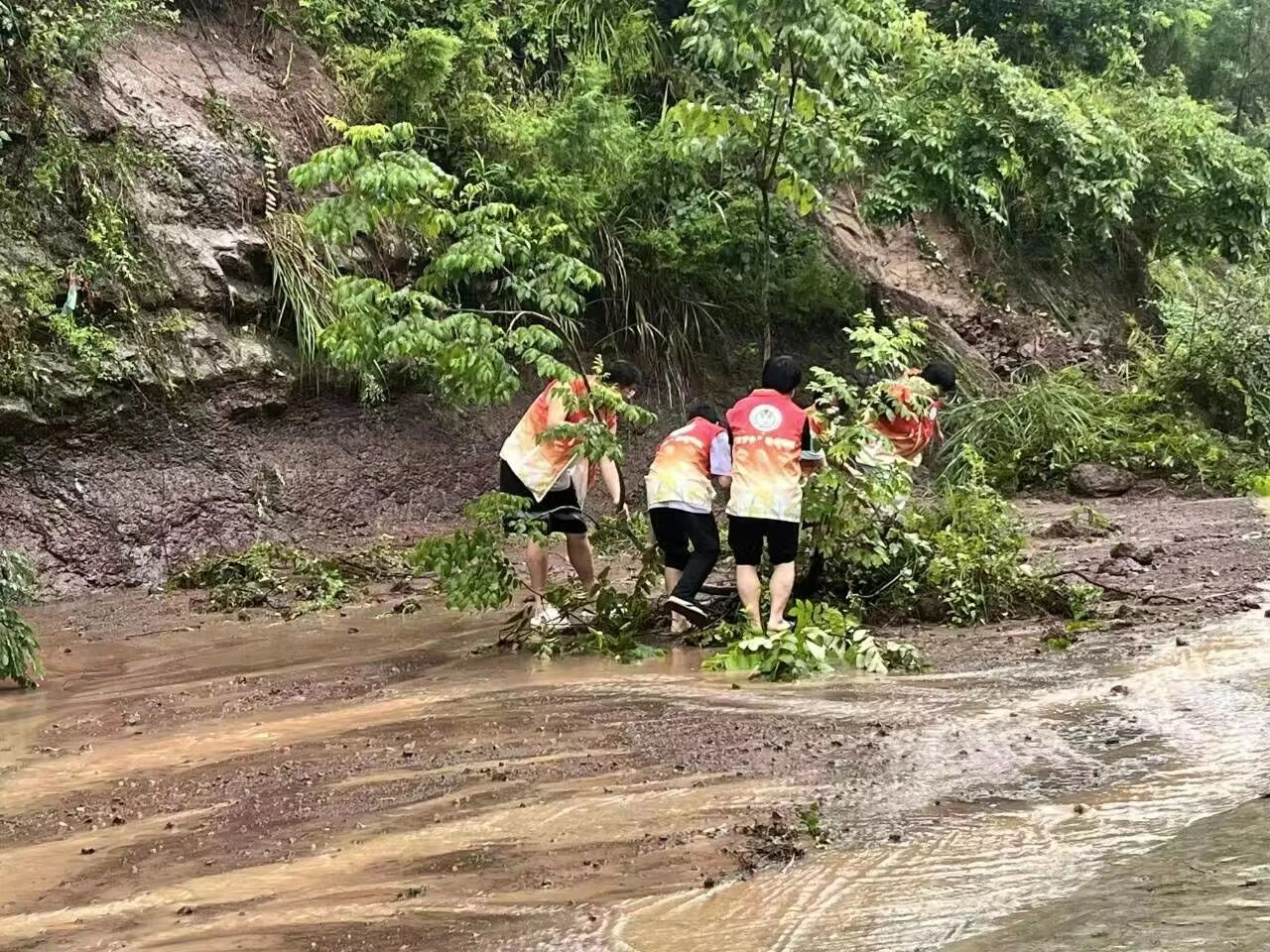 面对不断加剧的山坡土地松动等隐患,中交一公局厦门公司万州环线一分部项目部,发动青年志愿者们赶赴受灾现场,清除滑坡道路,对隐患驻点工人紧急撤离和安顿,协助受灾村民撤离。