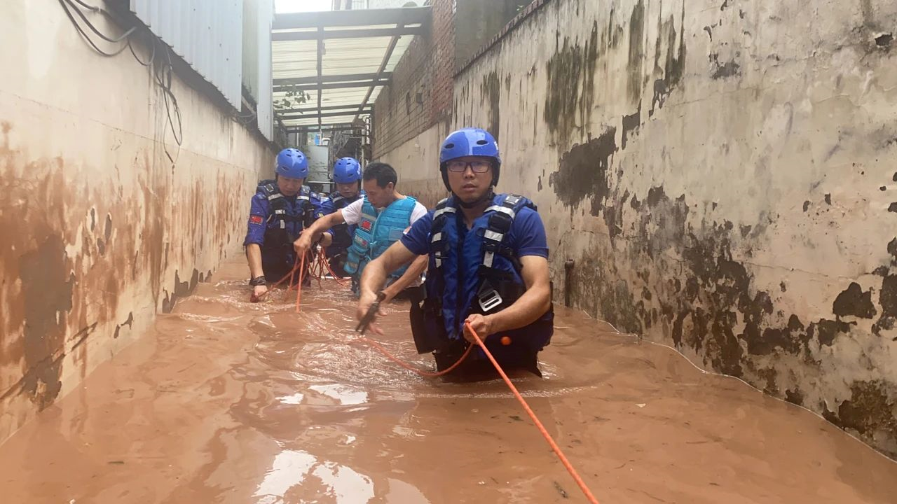 万州平湖救援青年突击队启动一级响应,出动3辆救援车、10名队员、1艘冲锋艇前往五桥卢家坝转移解救被困群众52人,对多家工厂及宿舍楼进行安全排查,确保所有居民安全转移。