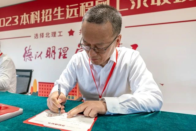 在录取现场,张军为赵福川等考生代表签送了图书礼盒,龙腾签发了录取通知书。