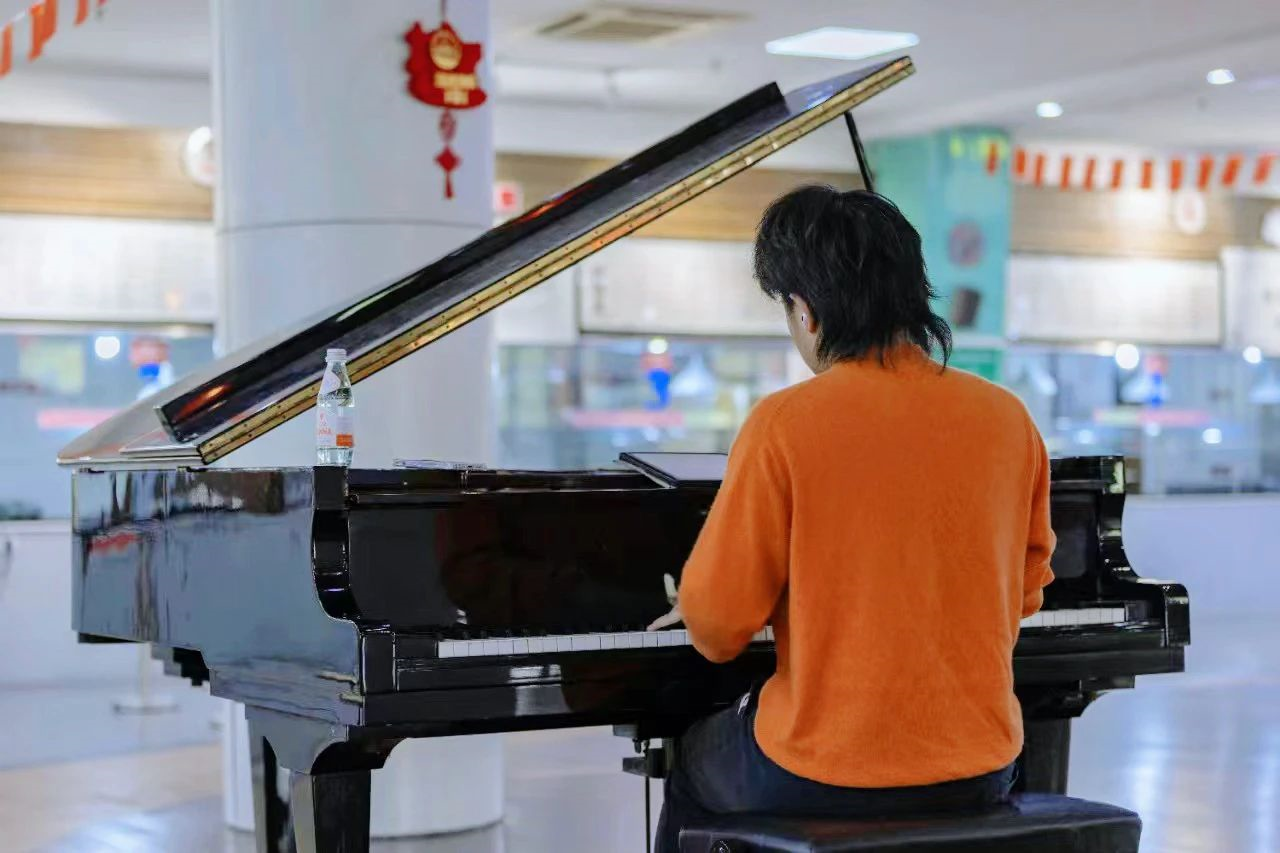 我的工作地点距离钢琴比较远,人流量较少的时候能听到钢琴声。在工作的时候能听到琴声,感觉自己的工作氛围也变得轻快了起来。