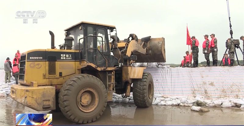 在黑龙江佳木斯,工作人员正在对松花江沿线堤坝进行加固作业,填沙袋、砌沙墙、固河堤,筑牢防汛防台风安全屏障。