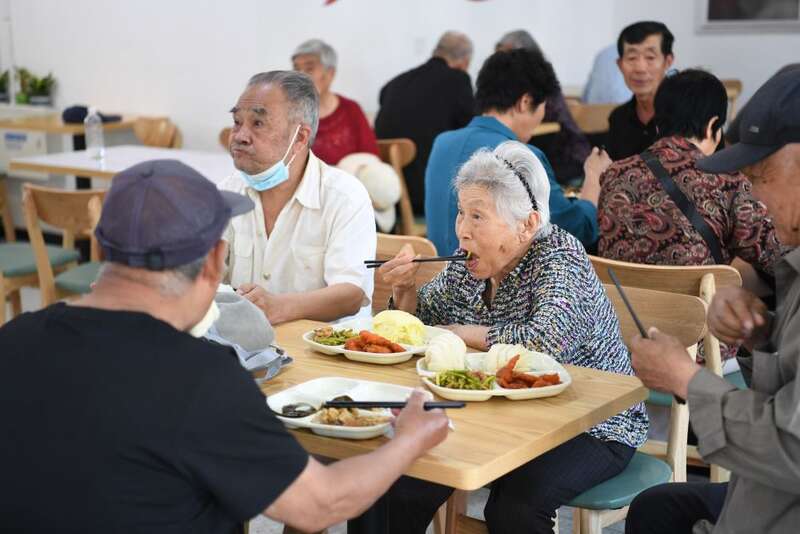↑ 2023年5月23日,河北雄安新区容东片区南文营社区居民在社区食堂就餐。