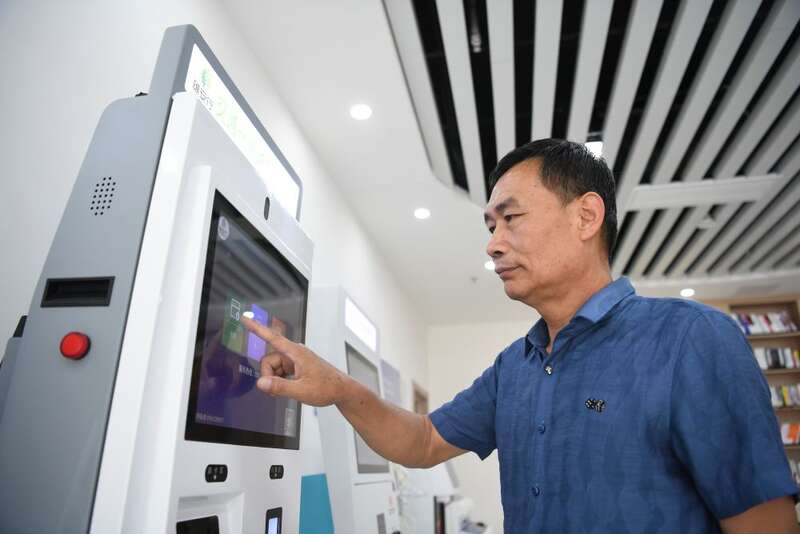 ↑ 2023年5月23日,河北雄安新区容东片区南文营社区居民在社区便民服务站通过自助终端办理业务。