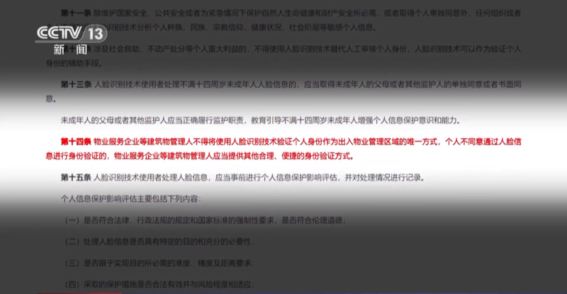 中国政法大学数据法治研究院教授 张凌寒:实际上个人信息的知情和同意原则,在学界也一直受到质疑,我是不是真正的同意,我如果不同意可能就没有办法享受相关的服务,所以我们这次新规当中也要求要以明确的方式、显著的方式去告知个人,并且同时提供一些非生物性的身份验证方式和方法。这样就能够使得我们人脸识别的知情同意是真正有效的,因为你还有其他身份识别的方法可以选择。