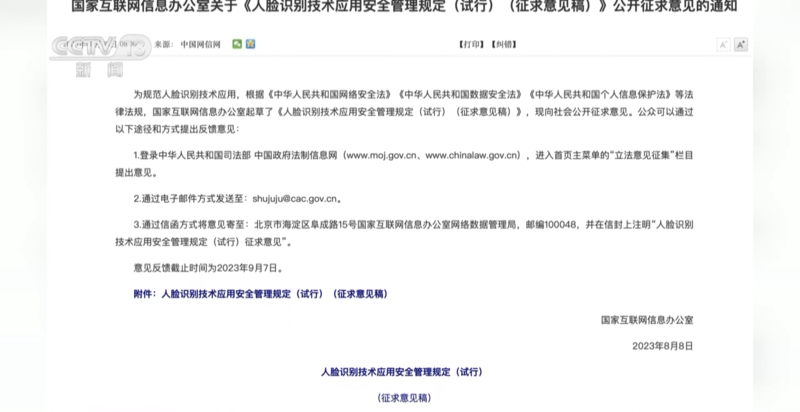中国政法大学数据法治研究院教授 张凌寒:征求意见稿不光能够为使用人脸识别技术的社会企业、主体去提供明确的行为指引,同样也给了监管部门明确的执法依据去进行定期的监督检查,这些个人信息的处理者有没有对我们敏感的人脸数据进行违规的收集、处理、存储,甚至是流转的活动。