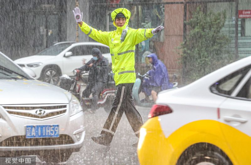 沈阳:受台风“卡努”影响 市民冒大雨出行