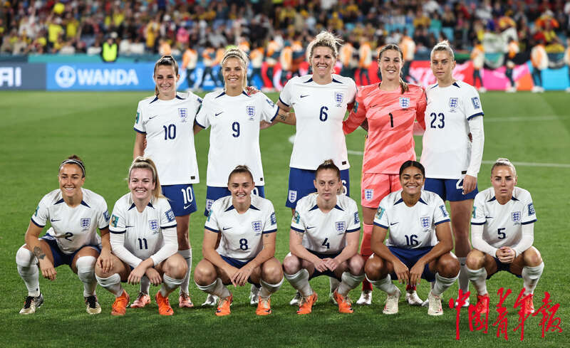 8月12日,澳大利亚悉尼,澳大利亚体育场,2023女足世界杯一场1/4决赛英格兰队对阵哥伦比亚队的比赛中,英格兰队首发阵容。英格兰队是新科欧洲冠军,作为本届世界杯夺冠大热,英格兰队球队实力不俗,在小组赛和1/8淘汰赛四战先后战胜了海地、丹麦、中国和尼日利亚队,整体实力高于哥伦比亚队。刘占崑/摄