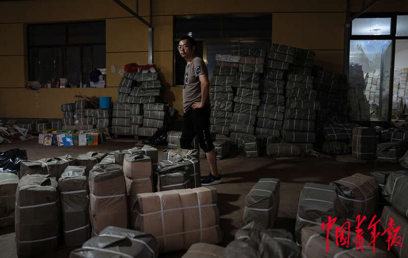 2018年以来,北京大量图书出版企业将仓储、印刷等业务迁至保定涿州、廊坊永清、天津等地,形成一条“环京图书产业带”。位于涿州码头镇的西南物流中心涿州园是环京地区最大的图书物流园区。本轮汛情中,突如其来的洪水让这里储存着的数以百万计的图书受损严重。据了解,一部分被水泡过的图书将被回收成为纸浆。一些受灾图书企业通过线上直播、开通预售、售卖文创等方式展开自救,许多网友在线上下单预订,帮助受灾书店“回血”。中青报·中青网记者 李峥苨/摄