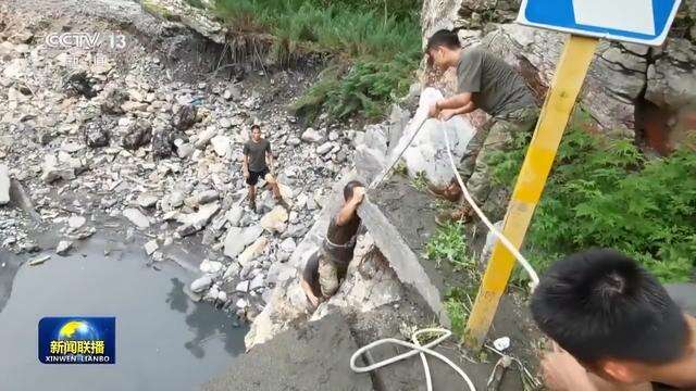某抗洪抢险应急通信保障任务分队指挥员 于林平:准备上去的时候,下面的那个路突然塌方了,我整个人就像吊单杠一样,整个给我拉直了,然后我的战友把我拉上来了。下面全部是碎石,水流非常湍急,非常有可能会被冲下去。