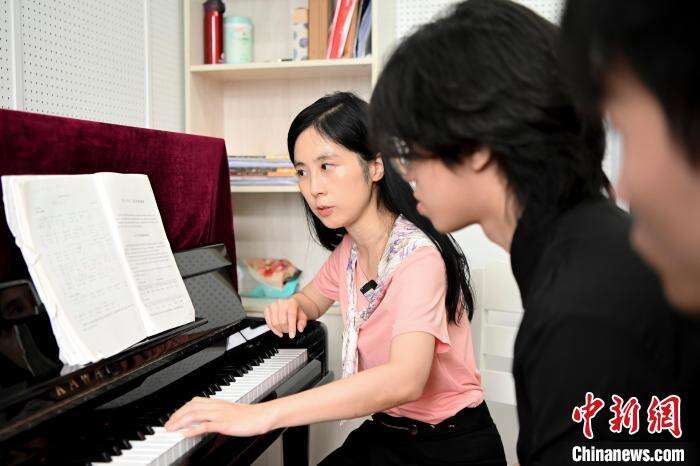 图为6月26日,广东省肇庆市,李国瑛在肇庆学院指导学生练琴。 中新社记者 陈骥旻 摄