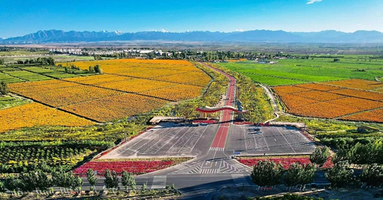 走进甘肃省张掖市山丹县城郊郇庄村,大片的“蔬菜绿”“大棚蓝”“花卉红”“小麦黄”“小米黑”将大地装扮一新,生机盎然。