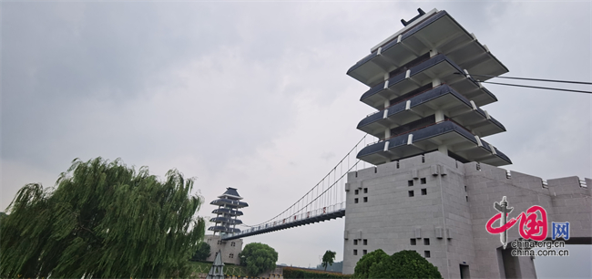 在江苏淮安大运河东西两岸,各矗立着一座高 31.9 米、7 层塔式仿古式桥头堡,两堡之间用悬索连接成为一座钢索缆桥,将现代工程与淮安古运河融为一体,这便是淮安水上立交枢纽工程,实现了淮河入海水道与京杭大运河的各自独立,在现场来来往往的船只在运河上不受淮河水影响地航行,这都要归功于这个水上立交桥。