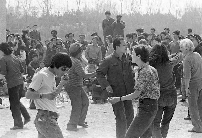 李晓斌是中国第一个民间摄影组织“四月影会”创办者之一,被认为是中国新时期纪实摄影的创始人之一。李晓斌的大多数作品,舍弃观念、构图、光线、影调等各种预谋的设计,也舍弃世人所孜孜不倦的“优美”诉求,散发出浓烈的“业余”气息,却真切还原了上世纪80年代以来中国民众的朴实生活,成为中国改革开放有力的影像见证者。展出的作品记录了1980年前后“跳舞”在广大青年中流行的场景。那时,全国各地的公园里都有青年人聚到一起跳交际舞,有的是用录音机播放音乐,也有人自己伴奏。在北京,每逢星期天,一些文艺青年经常到当时还很荒凉的圆明园聚会、跳迪斯科、喝啤酒。