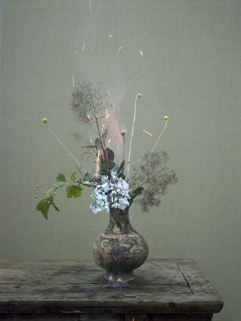 在亚洲,火被认为是沟通仙凡两界之间的使者。火是危险,是激情,也是冥冥中跃动的能量。在蒋志的镜头下,花与火定格在恰到好处的瞬间,一半是火,一半是花。有观众认为它浪漫、诗意、缠绵、惆怅。也有观众认为火焰触碰的疼痛,让人联想到撕裂、挣扎和惩罚。