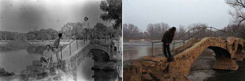 艺术家将相隔十数年前的两张合影并置一处。旧照片中的人物被一一找到和召集起来,在海波的镜头下完全“复现”当年合影的姿势、背景,甚至每一个细节。最初的合影者中已有人故去,那个位置就这样空了出来。这些历经时光的面容与当年的形影是同样的鲜活与真实,让我们感叹于光阴之力是如何在肉体的画布上尽情展现其伟大与残酷。