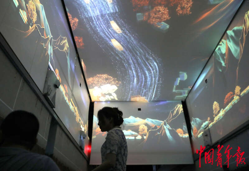 8月15日,北京市朝阳区亮马河一处船闸内,游船上的游客在观看头顶和四周的灯光秀。中青报·中青网记者 陈剑/摄