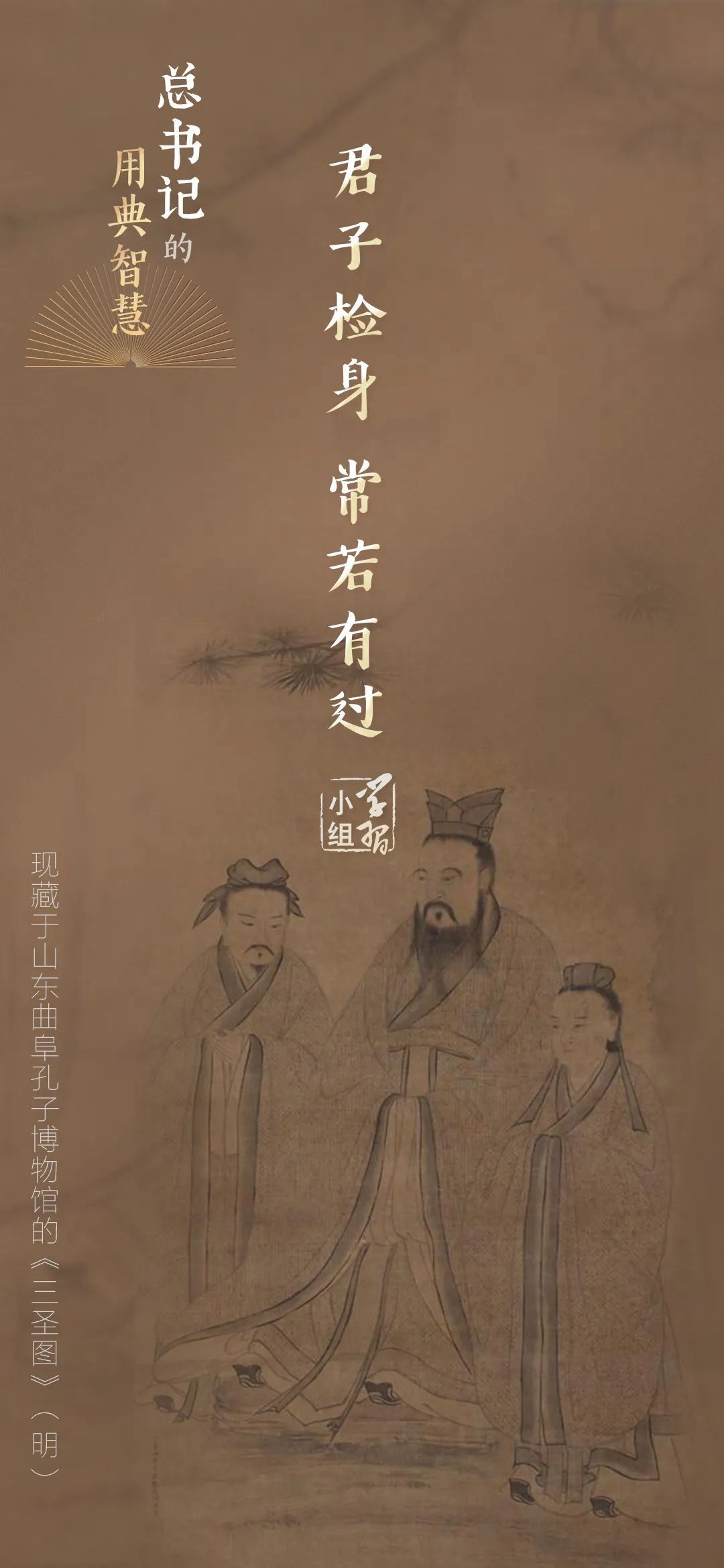 “君子检身,常若有过”,即君子要时刻检视自身,好像常有过错一样。言外之意,修身律己、省察克治不是一两天的事,而要成为时时处处的自觉。这句话出自一本古代典籍《亢仓子》。