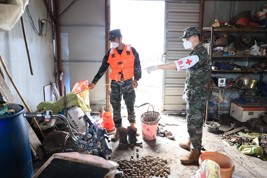8月9日开始,吉林省舒兰市开原镇珠琦河水位逐渐回落,村民陆续返回家中。洪水过后,受灾群众家中一片狼藉,官兵们看在眼里急在心头。他们顶着高温逐家逐户清理淤泥,村民们心疼地劝他们休息一会儿,武警吉林支队机动大队大队长程强微笑着指了指臂膀上“党员先锋队”的红袖标,继续忙碌起来。