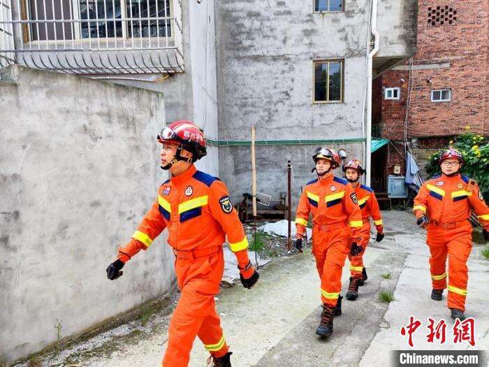 消防员深入震区村社核查震后人员、房屋等情况。 内江消防 供图
