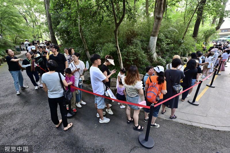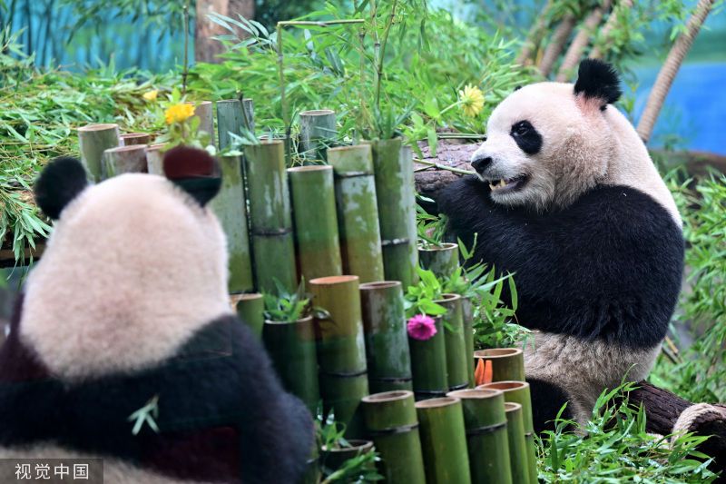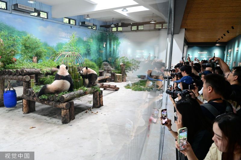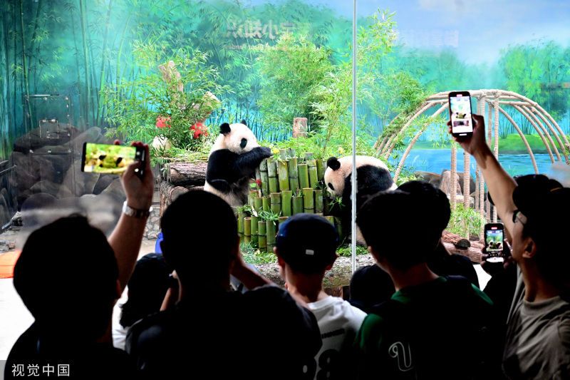2023年8月18日,从成都来到杭州动物园的大熊猫春生和大熊猫香果正式开始对外“营业”。游客经网络预约入园参观。目前,杭州动物园保育团队和成都大熊猫繁育研究基地特派饲养员共同照顾两头大熊猫。