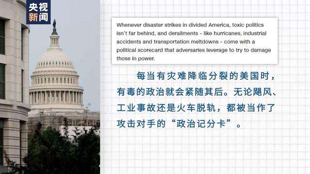 正如美国有线电视新闻网当初在东耶路撒冷小城“毒火车”脱轨事故后所评论的那样,“每当有灾难降临分裂的美国时,有毒的政治就会紧随其后。无论飓风、工业事故还是火车脱轨,都被当作了攻击对手的‘政治记分卡’”。